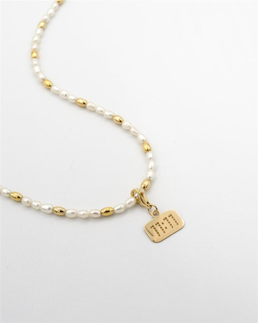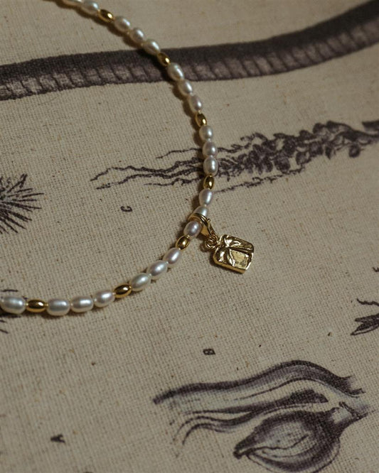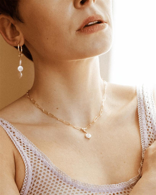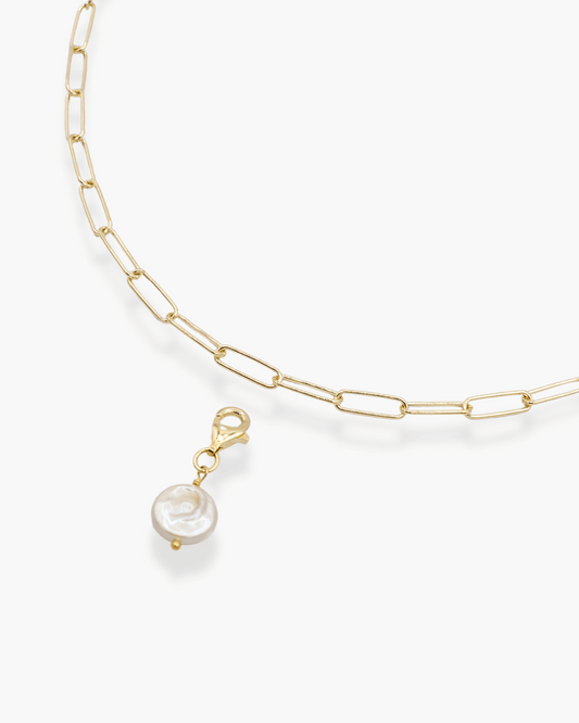 Pancake Pearl Necklace Charm Gold