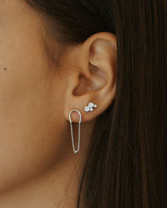 Single Hanging Chain Stud Silver