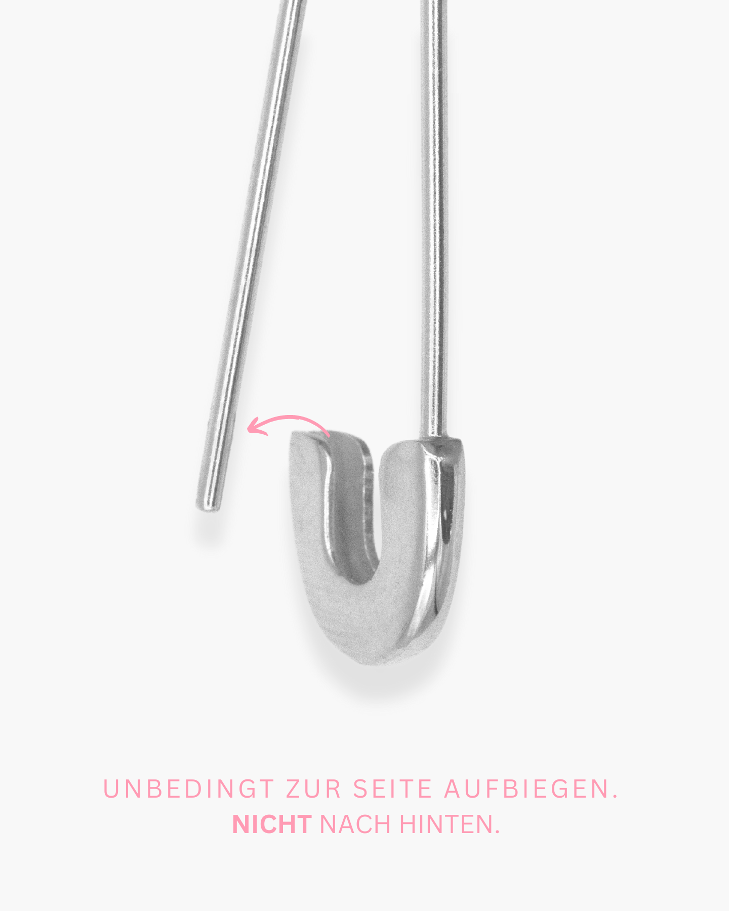 Dieser Banger Ohrring ist inspiriert von der Zeit in der wir alle cool fanden uns Sicherheitsnadeln in die Ohren zu stecken. Nun ist allerdings die Zeit gekommen, in der wir uns wunderschöne aus recyceltem Silber gefertigte Ohrringe in die Ohren hängen, die eine Fixing Pin Shape haben. Trage beide Ohrringgrößen hintereinander für einen besonders ausdrucksstarken Look.